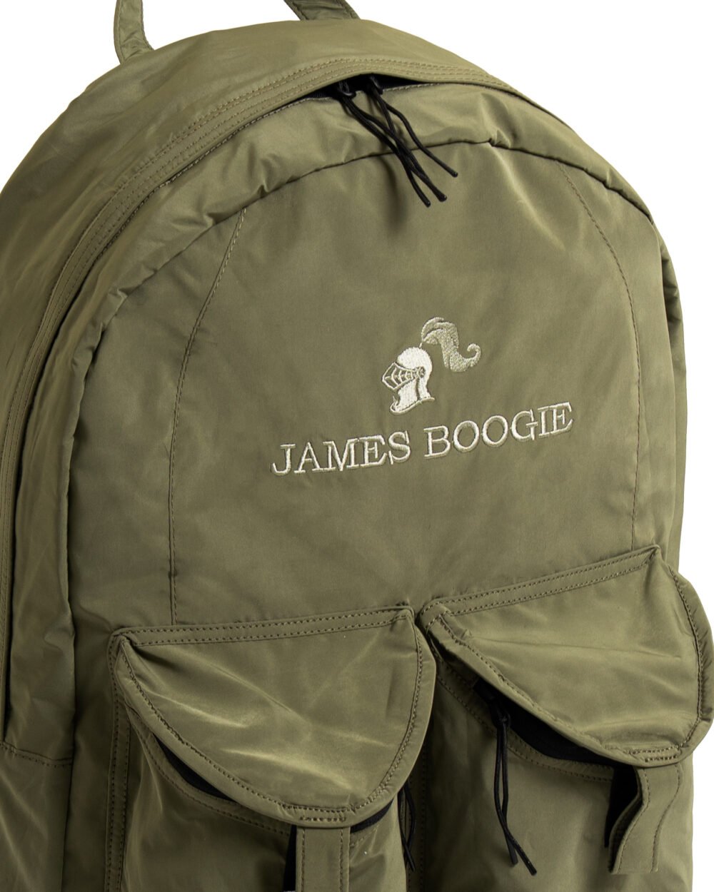 Nylon fabric | Plain cotton lining | Padded back | Lifting handle | Adjustable shoulder strap | Fastening two way zip | Laptop compartment | Front wide pocket with double closure | James Boogie embroidery.