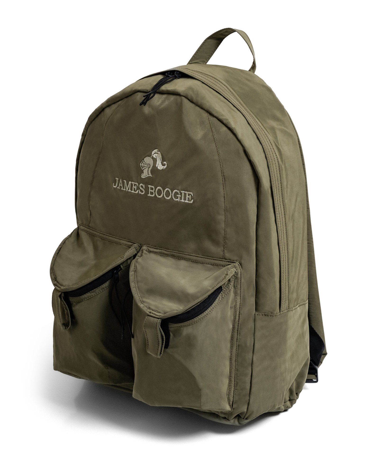 Nylon fabric | Plain cotton lining | Padded back | Lifting handle | Adjustable shoulder strap | Fastening two way zip | Laptop compartment | Front wide pocket with double closure | James Boogie embroidery.