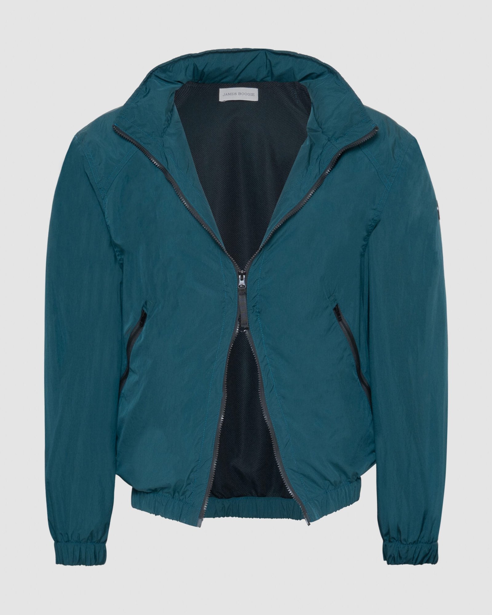 Inspired by classic flight jackets, built for modern journeys. A hidden hoodie sealed with a zipper, a James Boogie’s prints along the collar, and zippered side pockets for what matters most. Elastic cuffs keep the warmth close. Finished in deep cyan, where the depth of the ocean meets the freedom of the sky. A jacket made to move with history on its back.