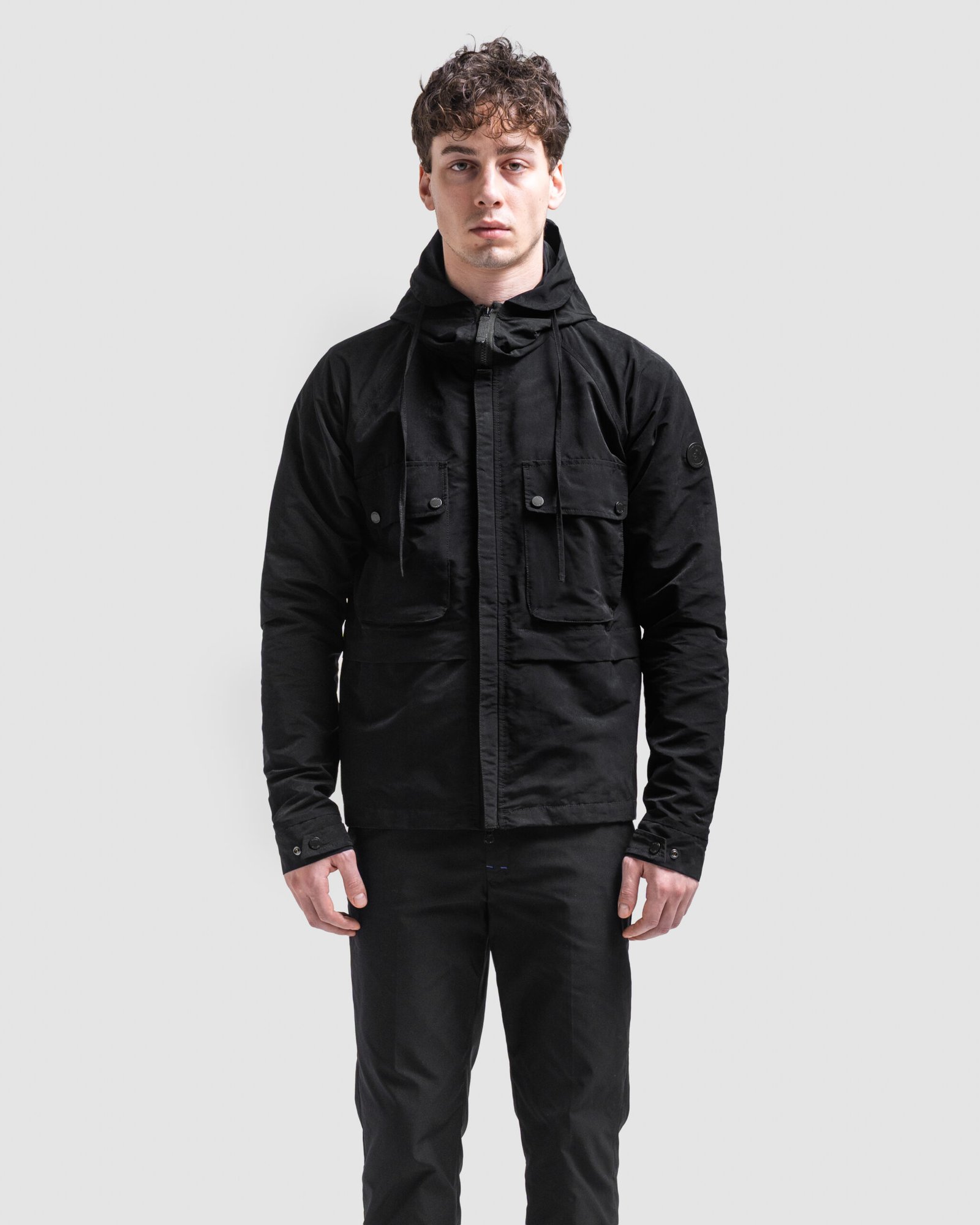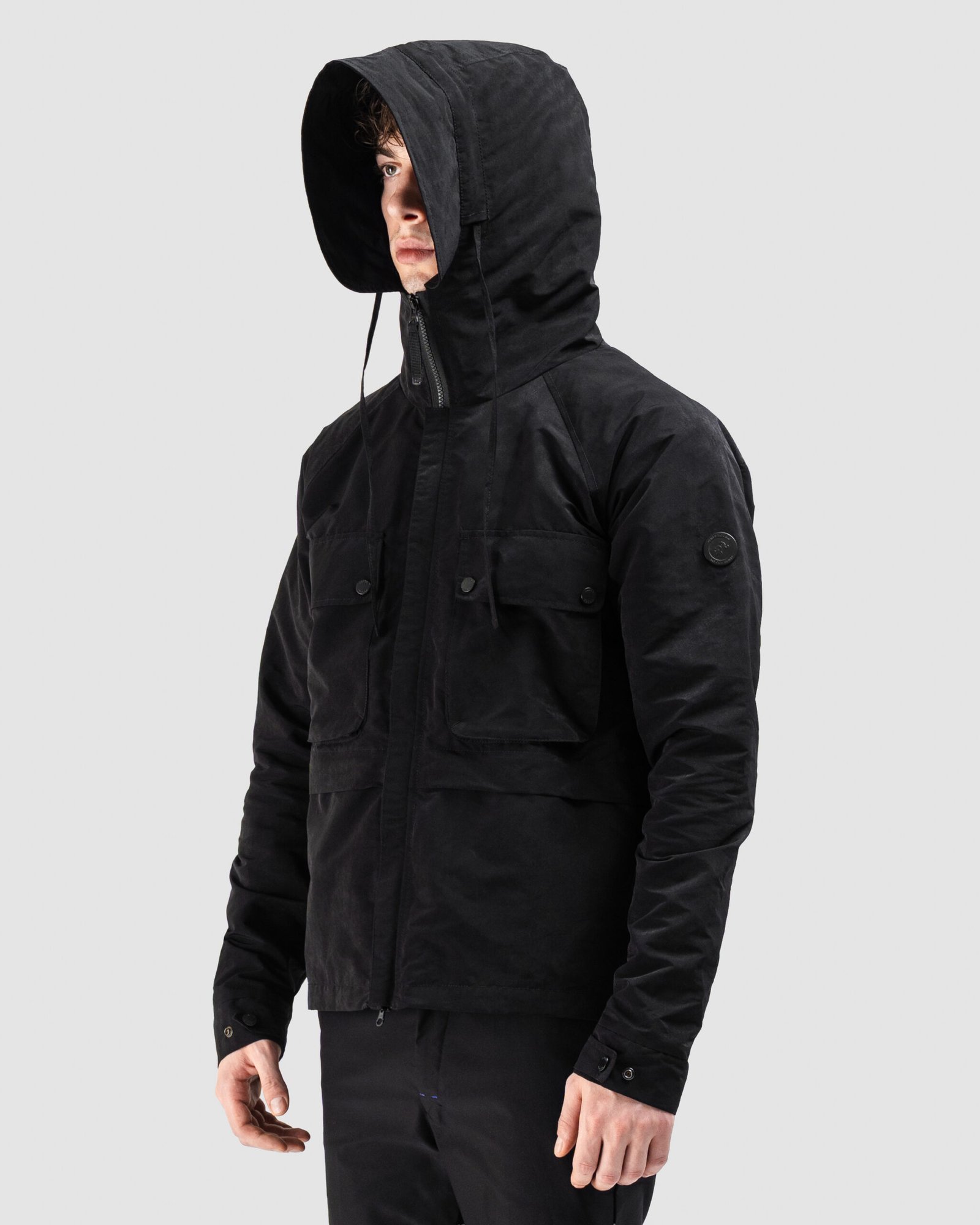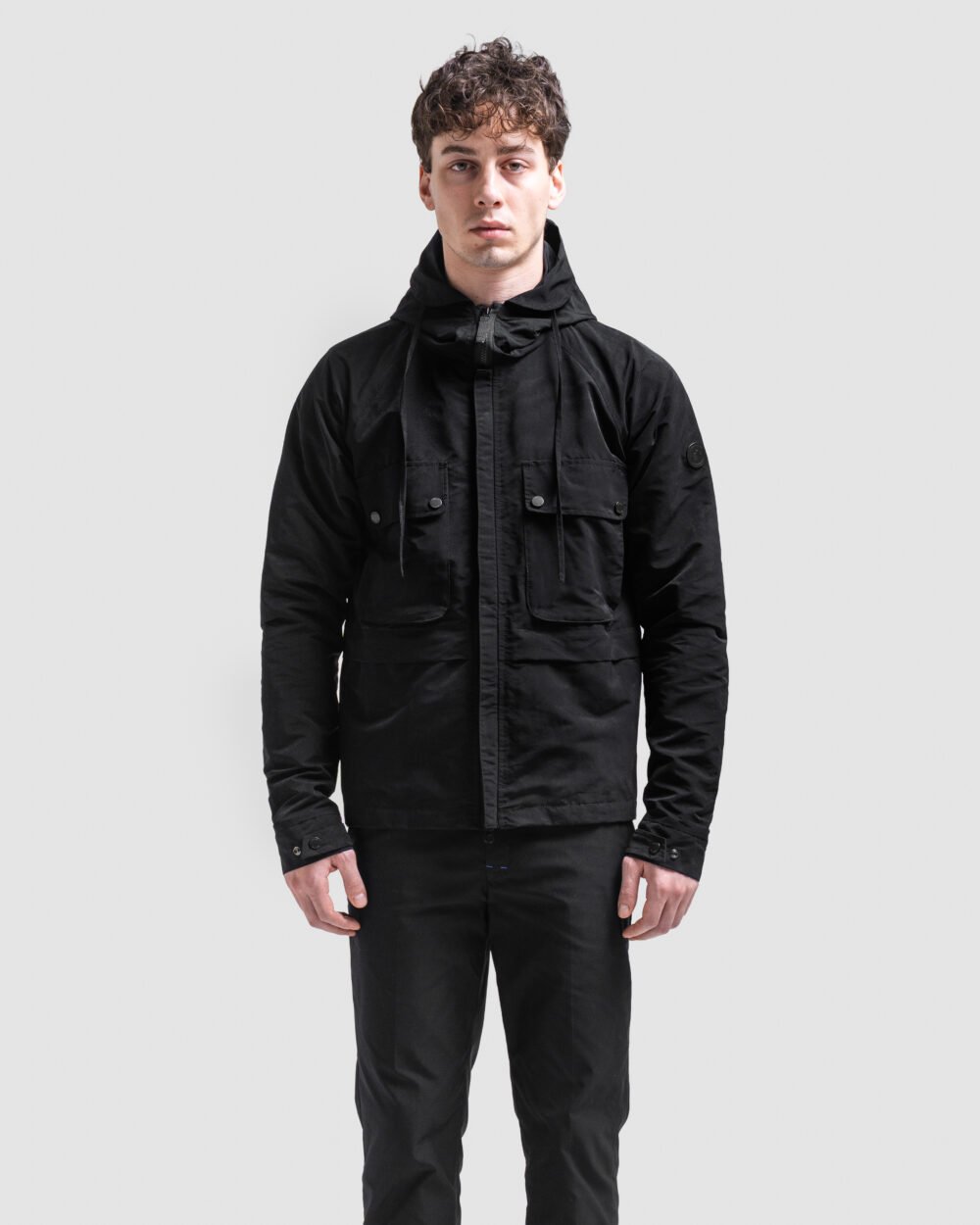 A study in controlled refinement. The lightweight barrier, tailored to respond to movement and look with quiet precision. The hood forms a clean, silhoutte line protection rendered as design. Its closures glide with deliberate ease, while discreet compartments follow the instincts of the hand. Every detail exists to serve comfort without surrendering sophistication. Completed in a deep, disciplined black, a shade that absorbs noise, reflects intent, and anchors any moment.