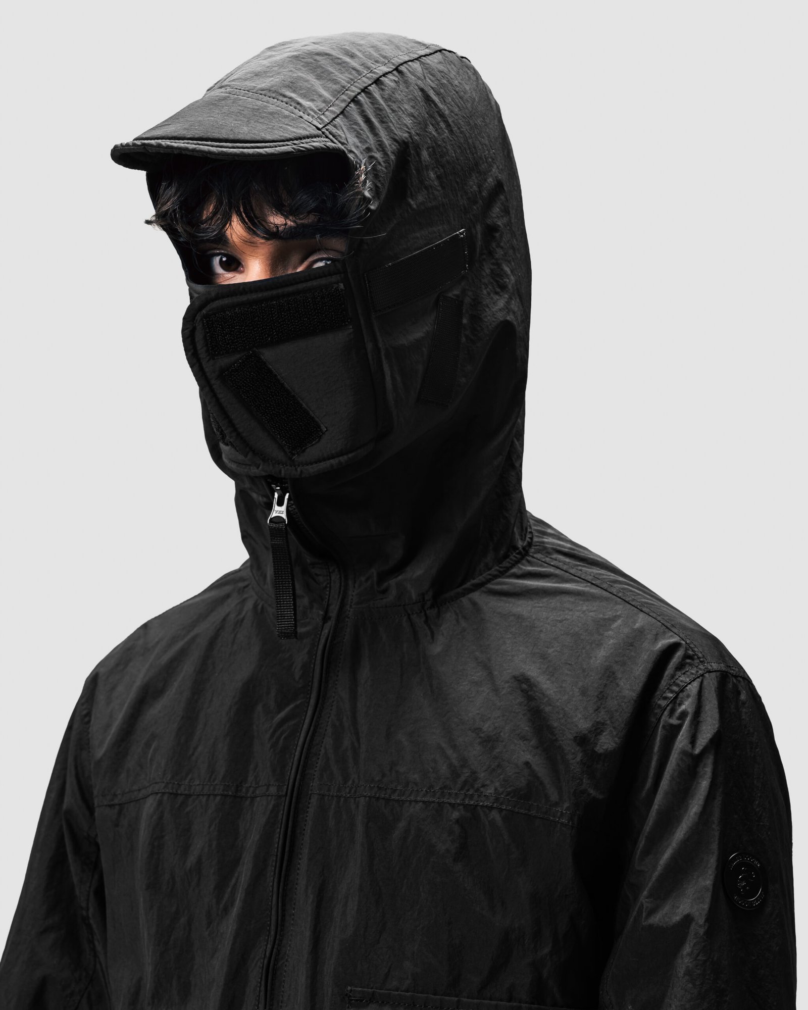 Combining the three element and converge in this experimental jacket. The military precision meets contemporary freedom and finished with experimental touch. The stacked pockets crafted like layers of intention. The mask on the hood, inspired by 80s military gear, offers anonymity as artistry. Simple in appearance, sophisticated in conception.